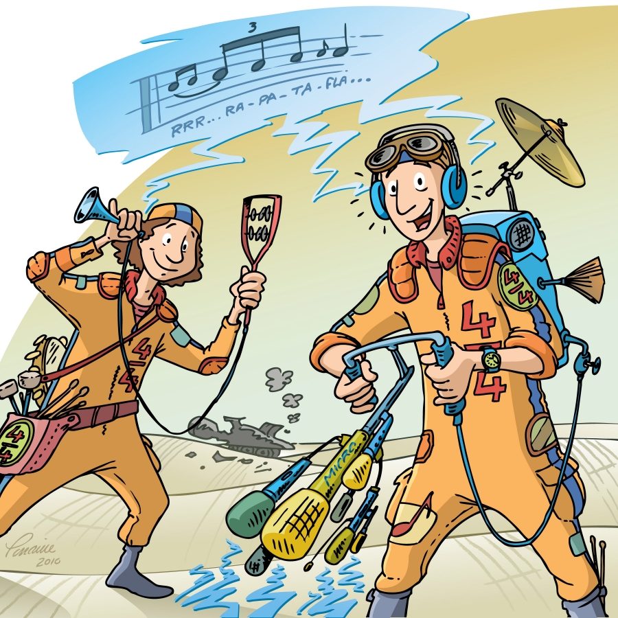 The Rhythmobile – a super-powered, all-terrain, hybrid vehicle – has unfortunately run out of gas. Captain Kit Crash, the Rhythmobile’s clumsy driver, and his tinkering mechanic, Whiplash, have had to swerve off to the side of the road in a panic. To make things even more complicated, the technologically sophisticated 4X4 can’t start without the right kind of high rhythm-rated fuel. Time is running out. Before falling too far behind in the rally race, our two adventurers immediately begin searching for their precious fuel: rhythm.