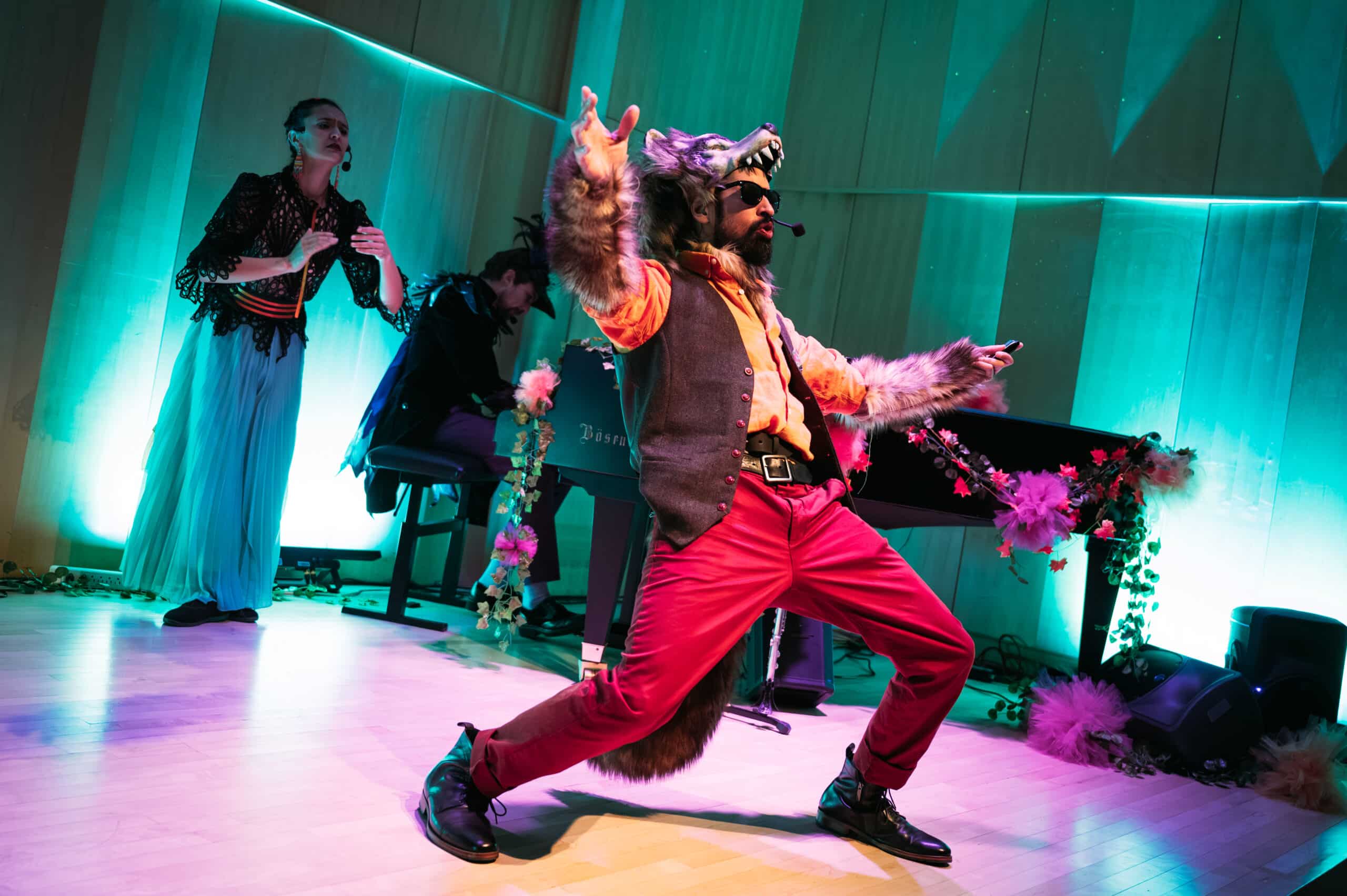 Le Bal de l’Halloween est une expérience participative où trois artistes, deux musiciens et une danseuse, invitent tout le monde à danser au rythme entre autres du reel des citrouilles! Conte, musique et danse font partie de ce bal où on fabrique des aurores boréales, où on hurle à la lune, et où on parle de peur et de transformation. Un bal stupéfiant dans lequel animaux fantastiques, sorcières guérisseuses et créatures ensorcelées invitent les enfants à danser sur les grands classiques musicaux traditionnels d’Halloween.