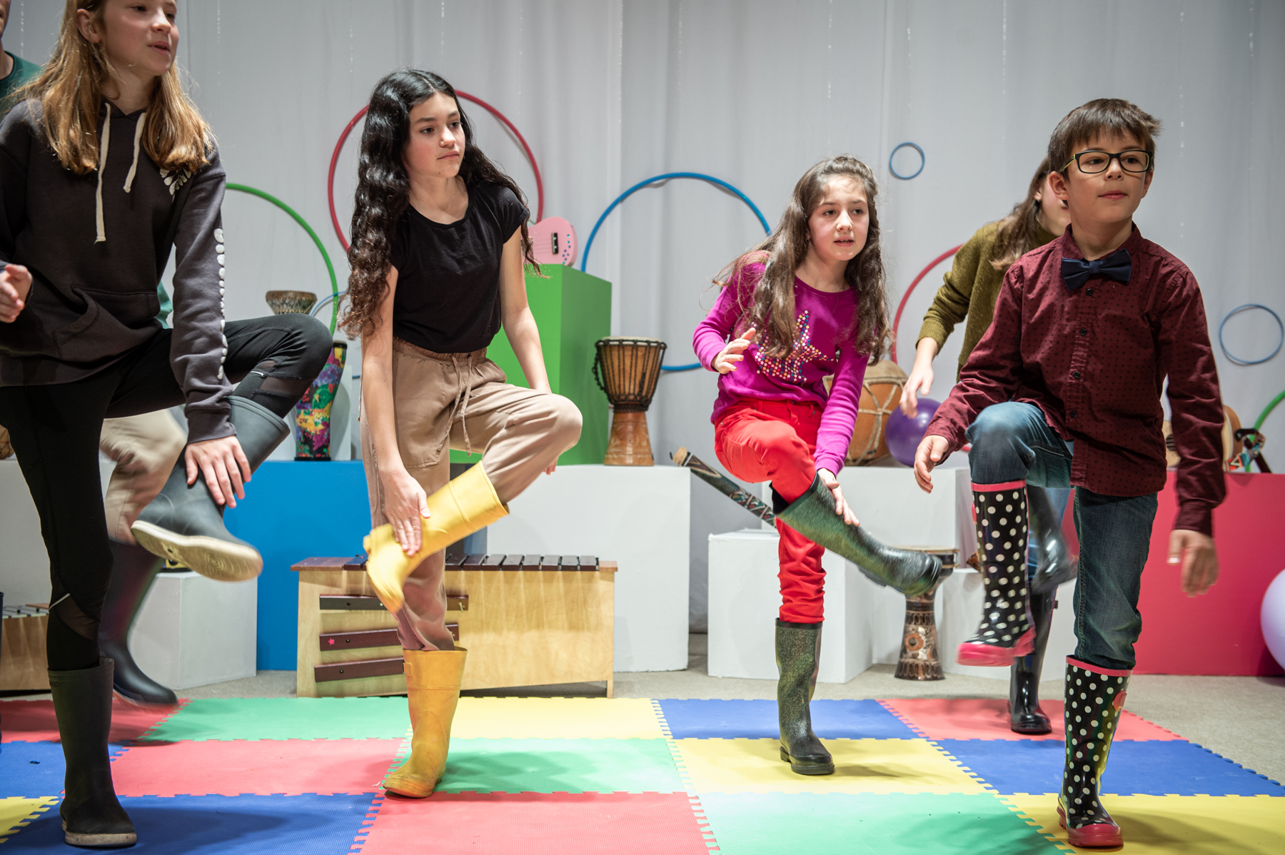 Dans cette initiation au rythme, les jeunes découvrent et observent différentes cultures musicales qui utilisent le corps comme un instrument de percussion. En trois séances, ils découvrent le gumboot, le flamenco, le beatbox et plus encore. En petit groupe, ils sont invités à relever des défis rythmiques et à en créer de nouveaux en s’inspirant des techniques percussives abordées tout au long des séances.