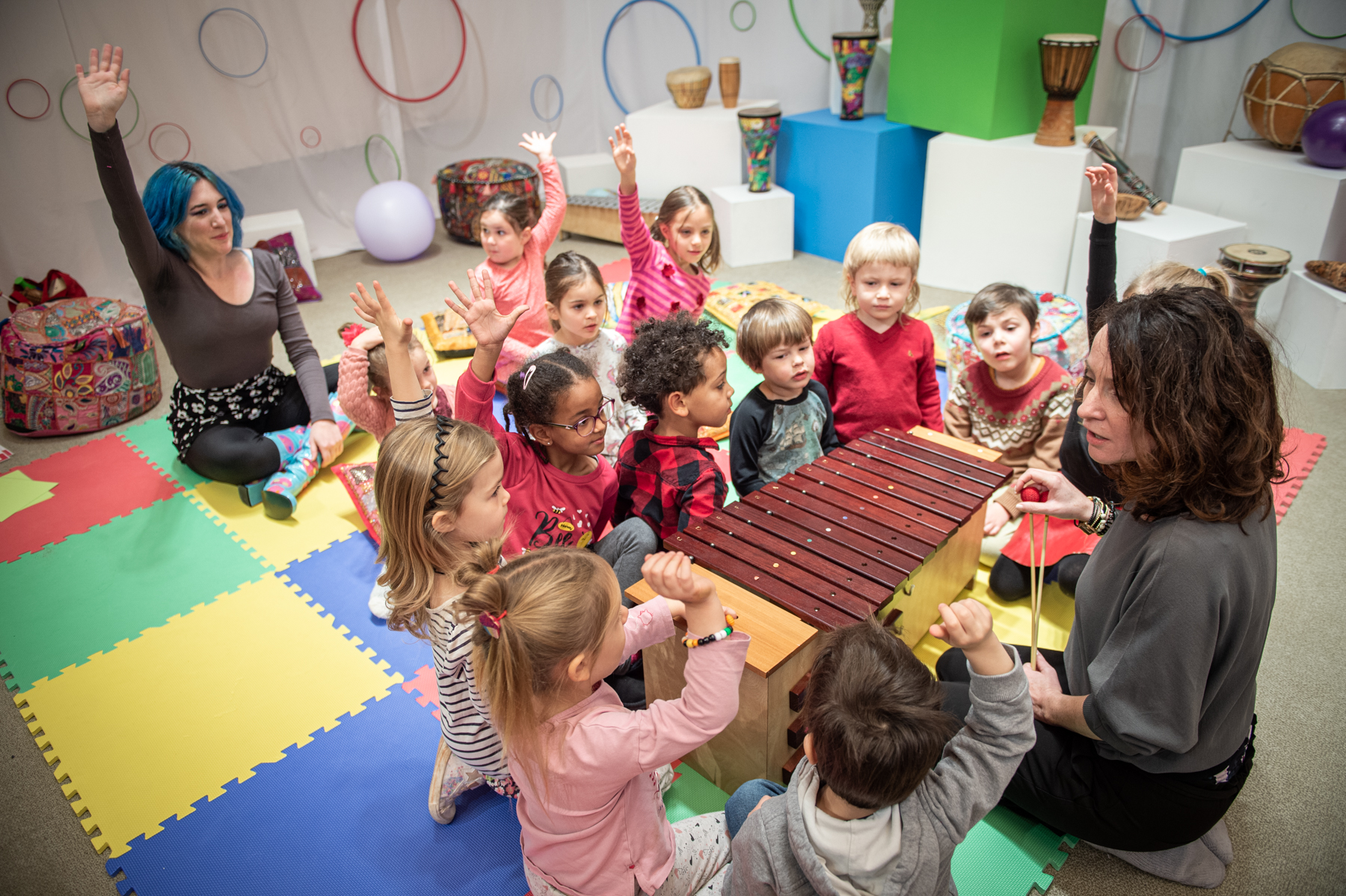 Accompagnés par le xylophone et le ukulélé, les enfants créent ensemble une chanson. Par le jeu, ils explorent leur voix et développent leur écoute autour de comptines à danser du monde entier. Formidable véhicule de traditions, le chant est un moyen d’expression incontournable !