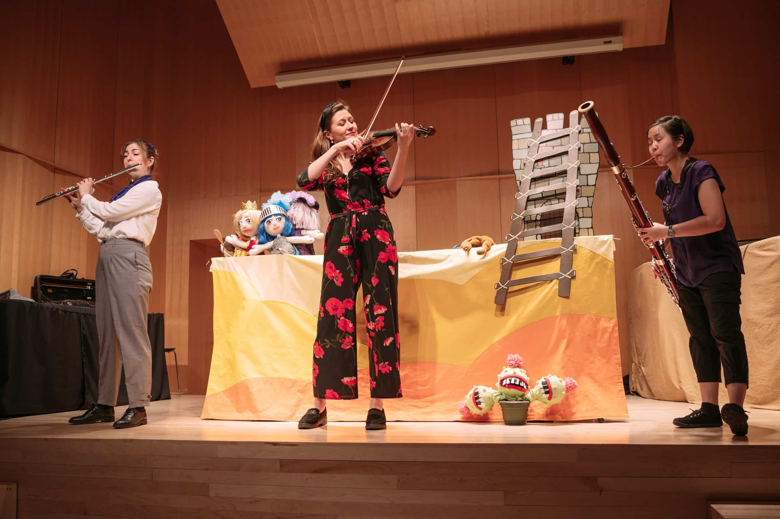 Trois talentueuses musiciennes coopèrent pour créer un concert inattendu. Mais les personnalités s’entrechoquent et les conflits surgissent. Grâce à la musique et à un conte qui met en scène des marionnettes décomplexées, elles parviennent à régler leurs conflits et à trouver l’harmonie en redécouvrant le sens profond de l’amitié et de l’amour.